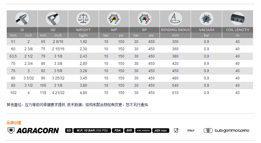 磨损性干燥食品排吸管 AGRACORN SD /10