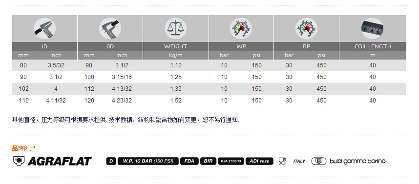 磨损性干燥食品输送管-可压扁 AGRAFLAT /10