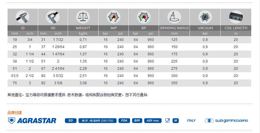 FEP多用途食品排吸管 AGRASTAR SD /16