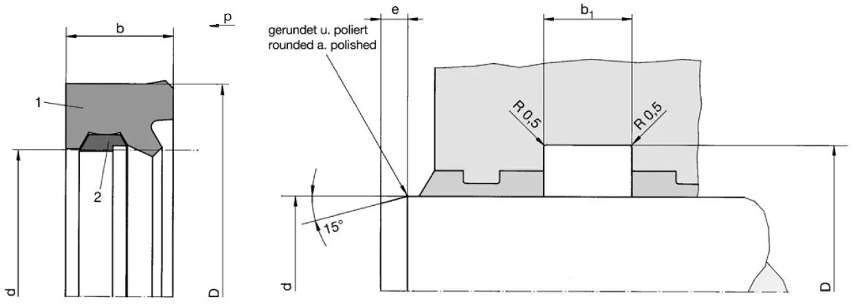 用于内部密封的饥饿 TDI 串联密封件是 活塞杆密封件。 它可以与矿物油和修改版形式 与水基液体 uids 使用, 无线网络重新耐 FL uids 和压缩 空气. TDI 密封件由 2 个部分组成, 一个带密封唇的 PUR 外部弹性环和一个带密 封边的耐磨 PTFE 青铜复合物的内部滑动环。 在网络结合之前,密封唇突 出超出密封件的标称直径,当 网络结合被压在活塞杆上时。 因此,在零压力下提供有效的密封。 滑动环由弹性环包围,并与 活塞杆直接接触轴向密封。 在 密封 圈压力增加和压缩的情况下,主要压在 活塞杆上的滑动环。 滑环产生一个 环形腔,其中 收集通过弹性体唇部的渗流油。 渗流线由海边缘固定,使得 新出现的活塞杆 Romains 干燥。 在旋转石膏被重新进入气缸 内密封表面上的 密封面包括在旋转环上的优秀的石膏石膏石油 当在一个表面上的敌人 O” R “0.1 下午 0.3 点在 THO 活塞杆上。 最小的摩擦水平具有高效密封性 和长使用寿命。没有粘贴。没有不可接受的热 Geoeraton 和阿里以上没有 STCK 滑 eftect